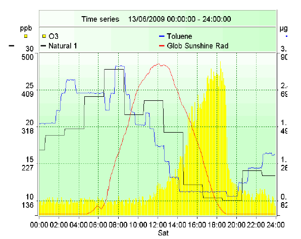 五、典型數據分析 大氣穩定度和O3、甲苯的關系
