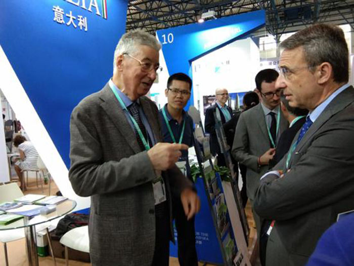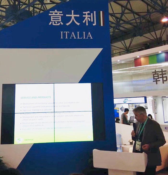 作為意大利Envint SRL總代理,博測環境應邀共同亮相于本屆展覽國際展團E3館。公司顧問、國際著名環保專家兼意大利Envint SRL負責人 Ivo Allegrini教授和公司營銷黃煦總監全程迎接八方來客。