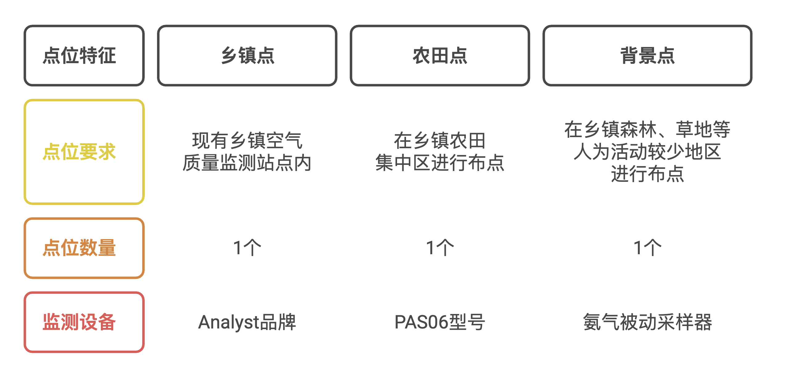 ? 區(qū)縣/城區(qū)監(jiān)測(cè)點(diǎn):了解試點(diǎn)區(qū)縣的環(huán)境空氣氨氣濃度特征,可在區(qū)縣空氣質(zhì)量監(jiān)測(cè)站點(diǎn)上布設(shè)。