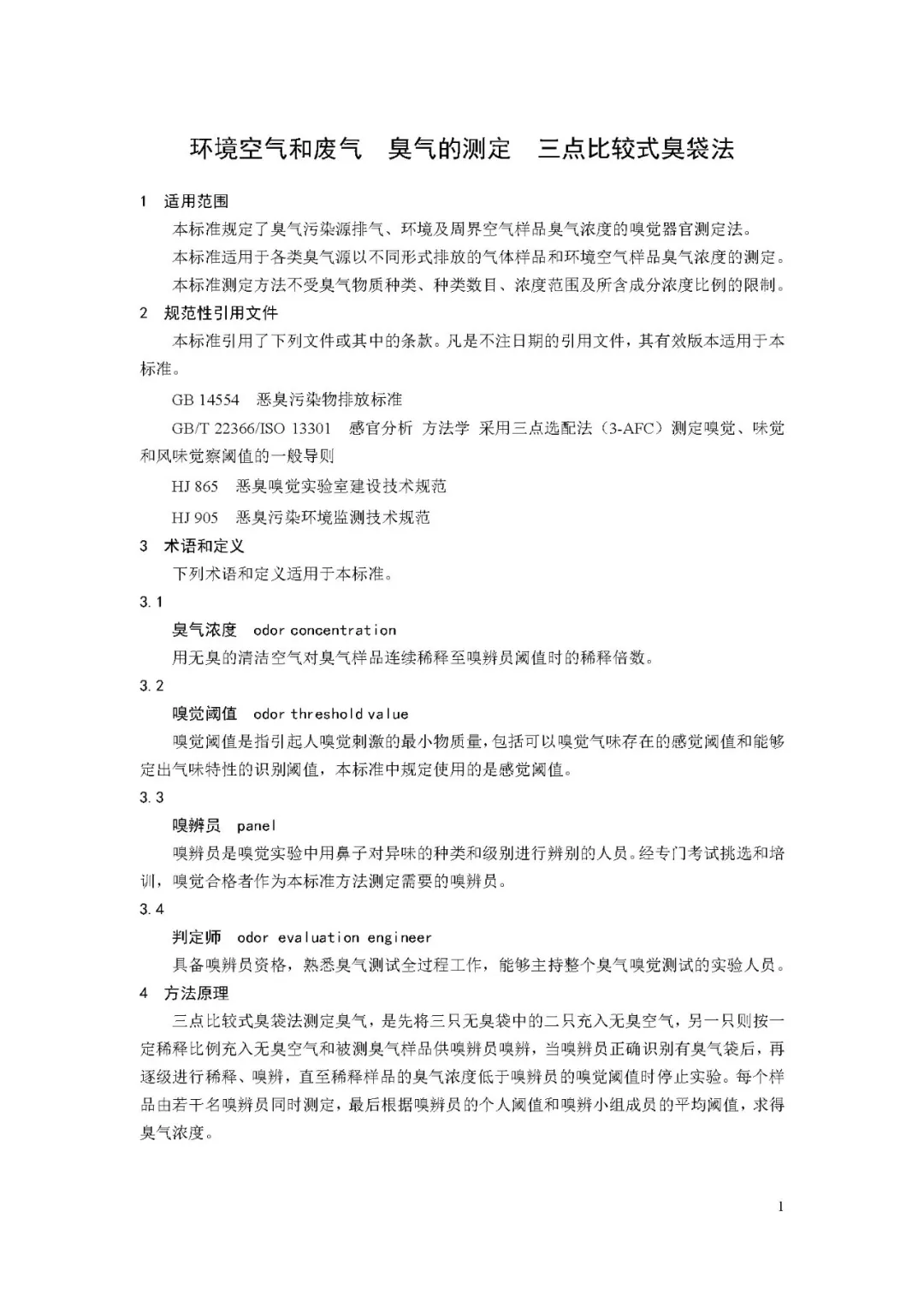 環境空氣和廢氣 臭氣的測定 三點比較式臭袋法(征求意見稿)全文如下: