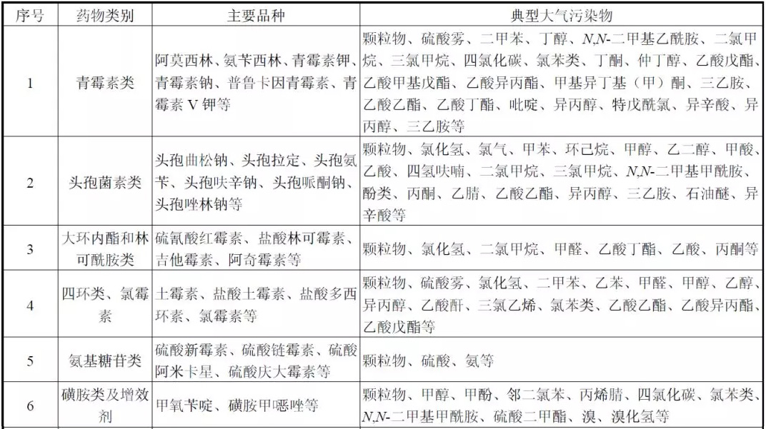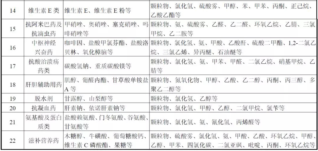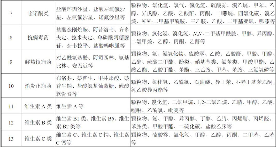 下表為制藥行業生產過程中排放的典型VOCs污染物: