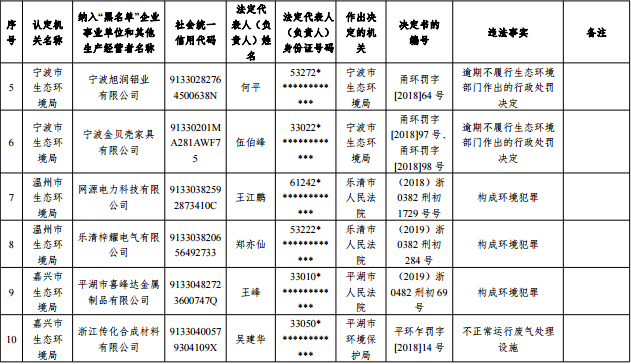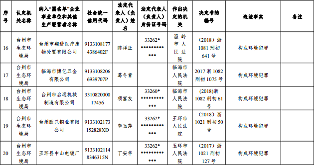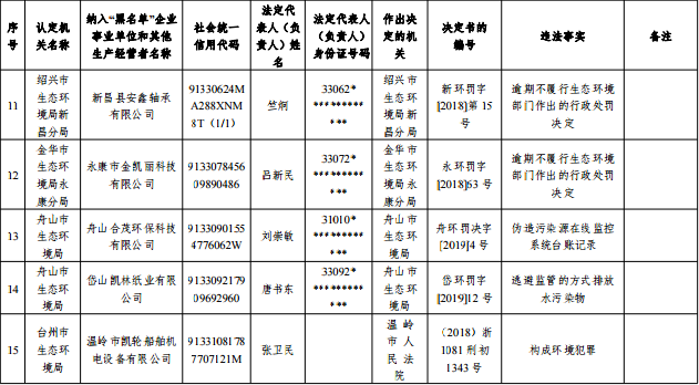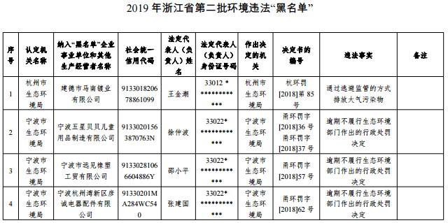 根據《中華人民共和國環境保護法》《國務院辦公廳關于加強環境監管執法的通知》《浙江省人民政府辦公廳關于印發浙江省企業信用聯合獎懲實施辦法(試行)的通知》《浙江省環境違法“黑名單”管理辦法(試行)》等相關規定,現將2019年浙江省第二批環境違法“黑名單”予以公布。詳情如下: